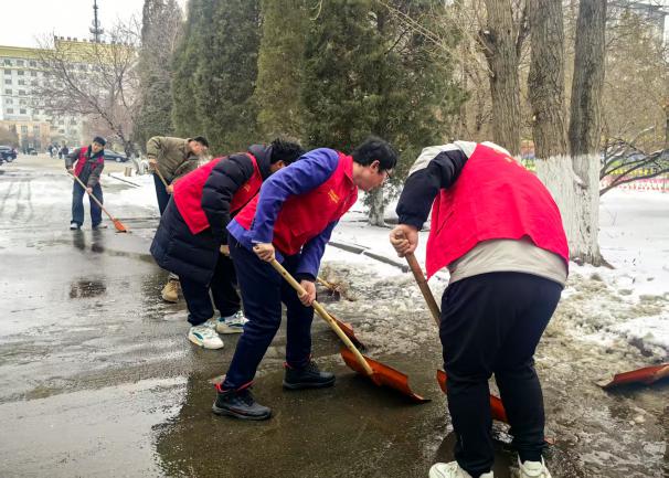 2025年3月4日,beat365会员官方网站组织教师、学生党员、学生干部开展清扫冰雪志愿服务活动。