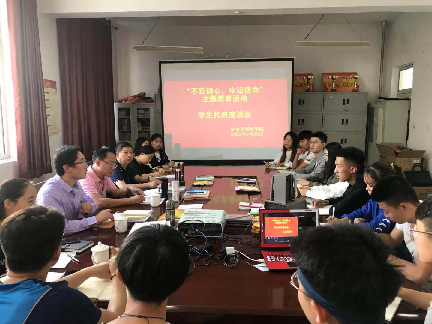 9月28日15:00,beat365会员官方网站党总支中心组在临曦楼204党员之家开展“不忘初心 牢记使命”主题教育之学生座谈会。
