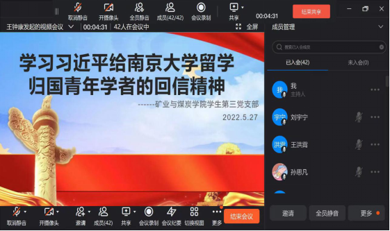 2022年5月27日下午16:20,beat365会员官方网站学生第三党支部于钉钉平台线上开展预备党员转正大会。本次会议由支部书记闫妍同志主持,支部全体党员参加。