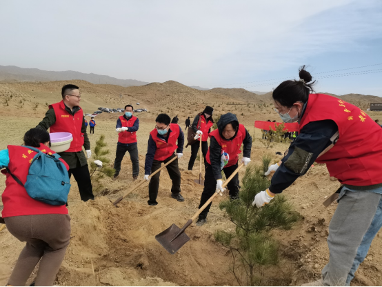 2023年4月15日,教工第一支部组织党员在东达沟村参加包头市向日葵义工公益协会举办的“公益植树,绿色成长”活动。