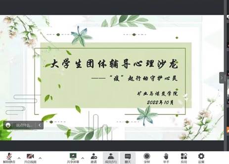 2022年10月22日beat365会员官方网站于线上腾讯会议开展了第十六期以“疫”起行动,守护心灵”为主题的大学生团体辅导心理沙龙。