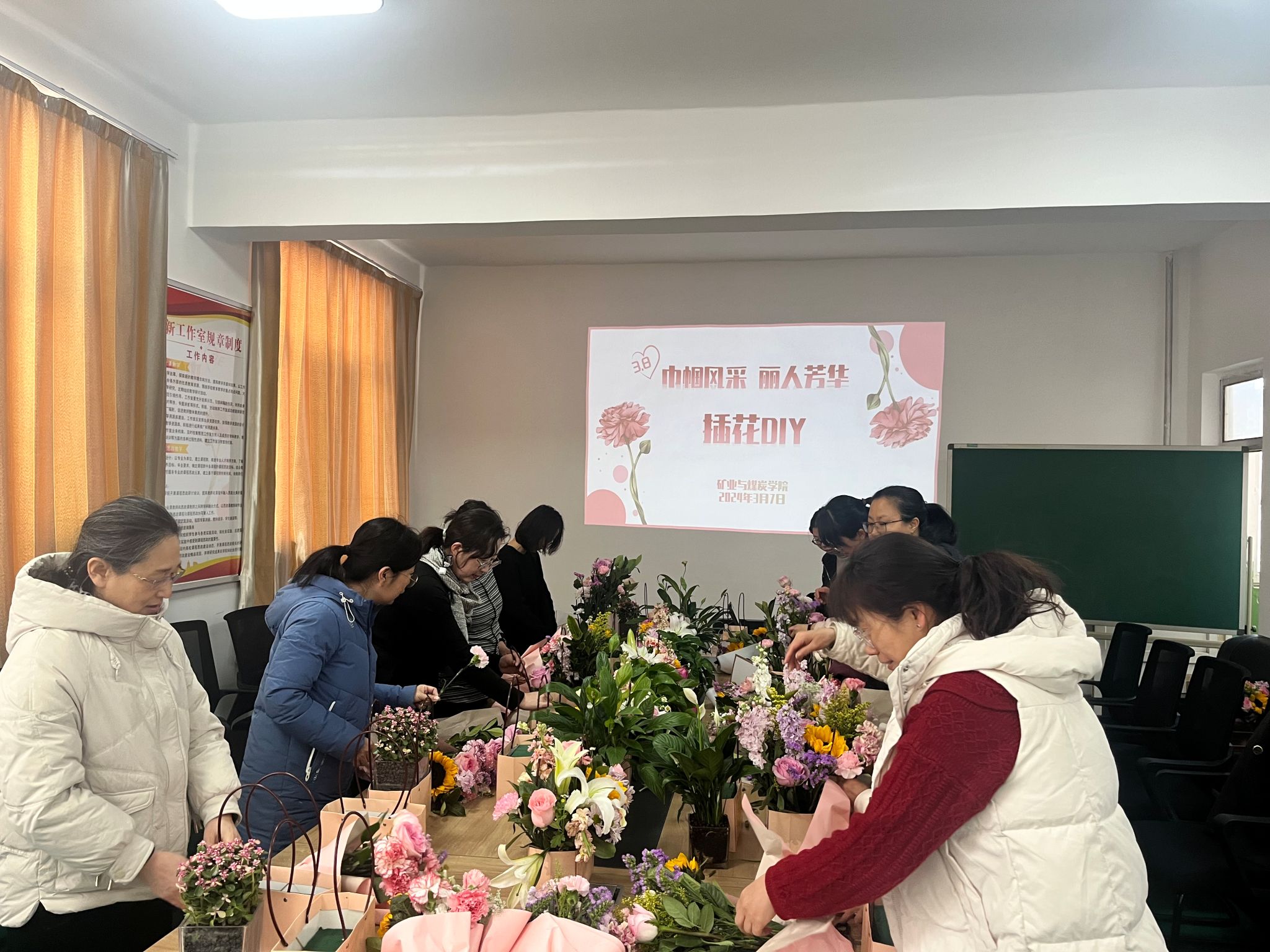 3月7日下午,beat365官网工会组织女教工进行插花活动庆祝“三八”国际妇女节。以“巾帼风采丽人芳华”为主题,旨在借花抒怀,丰富女性同胞的节日生活,工作之余培养她们爱美、知美、会美的生活情趣。