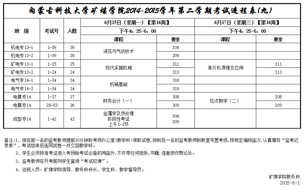 矿煤学院(高职)14-15(2)考试进程表九