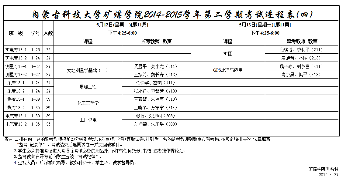 14-15(2)春学期矿煤学院(高职)考试进程表(四)